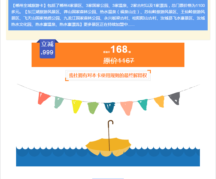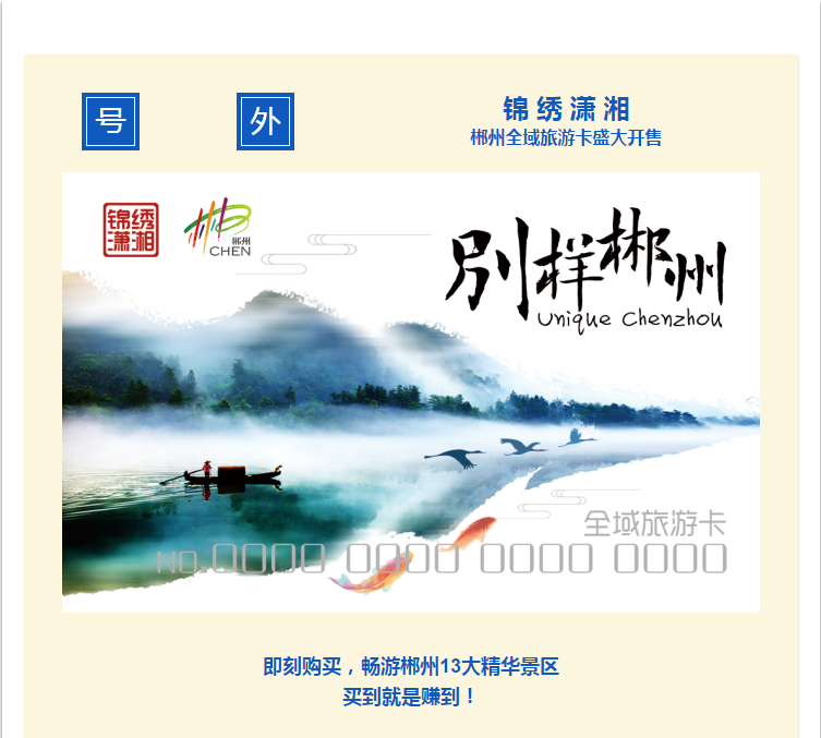 套餐二:1239元/套,包含別樣郴州全城旅游卡2張,溫德姆大酒店標雙2晚