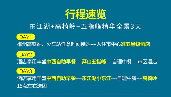 門票:莽山五指峰門票+環保車+索道上下+東江湖線路一門票+車費