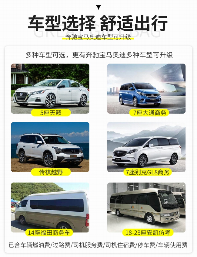 2.為保證服務品質控制接待人數請提請預訂。提請預約可按客戶時間接站即到即走。