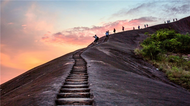 高椅嶺紅巖綠水,赤壁丹霞,,峽谷奇洞組成了“四面青山列翠屏、草木花光盡是香”的奇異丹霞地貌,是一個賞之叫絕、百走不厭的戶外休閑攝影勝地,丹霞地貌發育于紫紅色砂巖和礫巖之上,景觀多為方山,渾園平頂,四壁懸崖陡峭,巖腳陡坡辟有磴道。其形狀千姿百態,風景絢麗迷人。據此,有人評價郴州的丹霞景觀為“世之所有,此盡有之” 大旅行家徐霞客曾贊嘆它“無寸土不麗,無一山不奇”并鐫刻“寸土佳麗”。