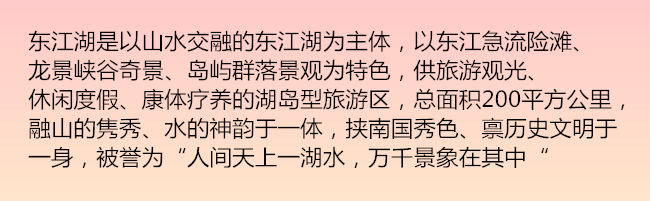 A東江大壩乘游船前往【兜率島溶洞】,可自行到碼頭補票B出景區后游覽東江湖周邊的免費配套景點如三湘四水旅游文化街/奇石館/瀟湘館/東江吊橋/壽佛寺等)自理用餐,參考美食:東江三文魚/資興米粉肉等