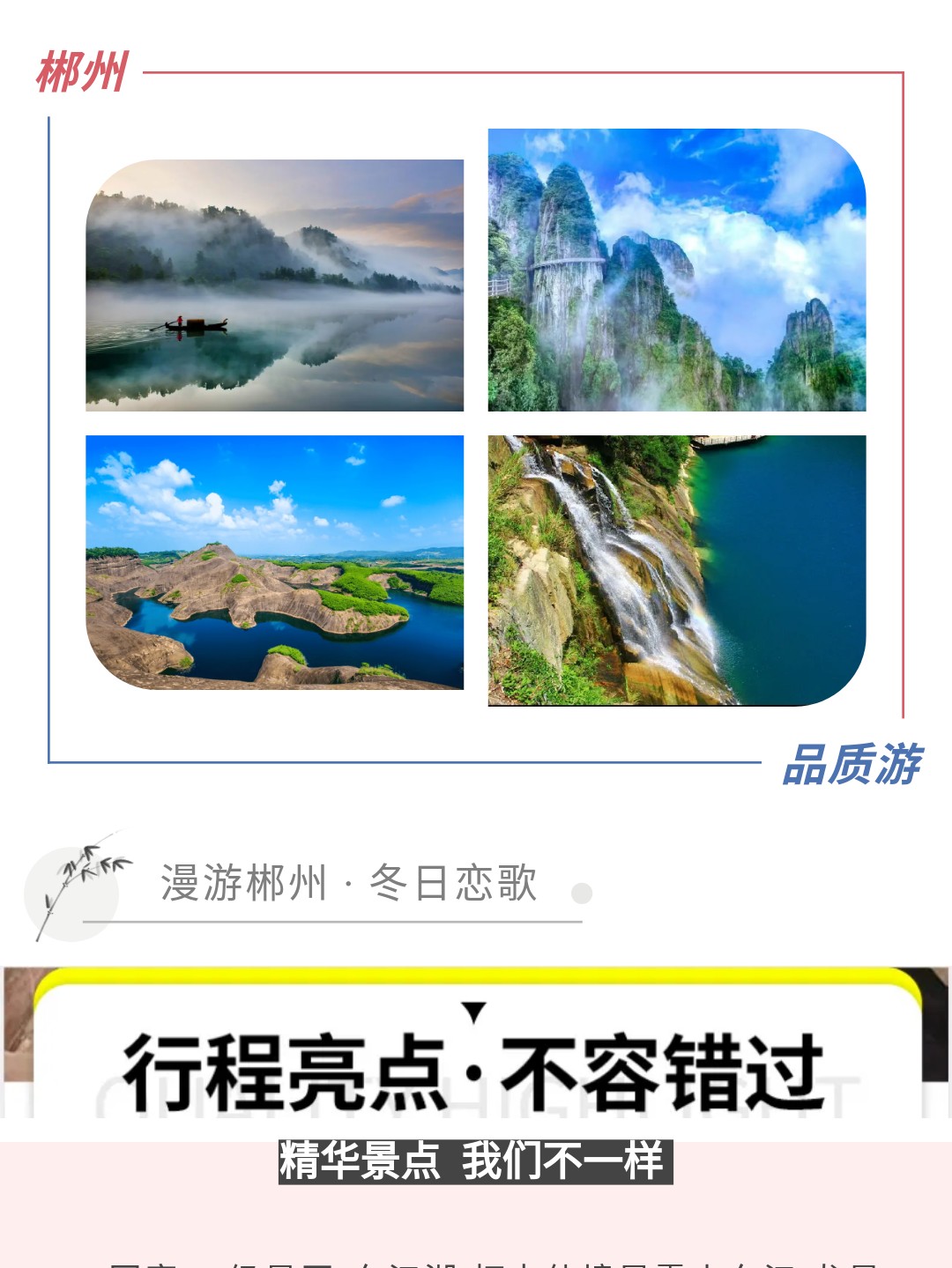 郴州旅游 漫游郴州 冬日戀歌 精華3日游2人起發(fā)郴州高鐵天天接團(tuán),入住精品民宿+精品小團(tuán)+景區(qū)高度自由行+無(wú)購(gòu)物,無(wú)自費(fèi)+管家服務(wù) 聯(lián)系電話18975523233