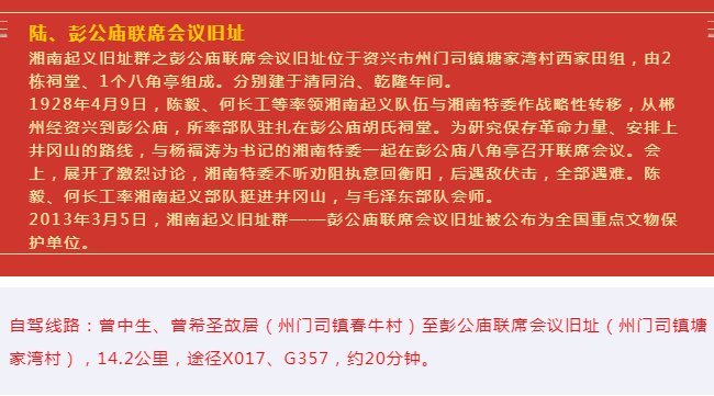 資興紅色旅游自駕線路指南