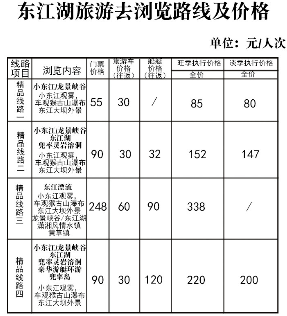 門票內容:含霧漫小東江、車觀猴古山瀑布、東江大壩外景、龍景峽谷,游東江湖船費,景區用車,瀟湘風情黃草鎮