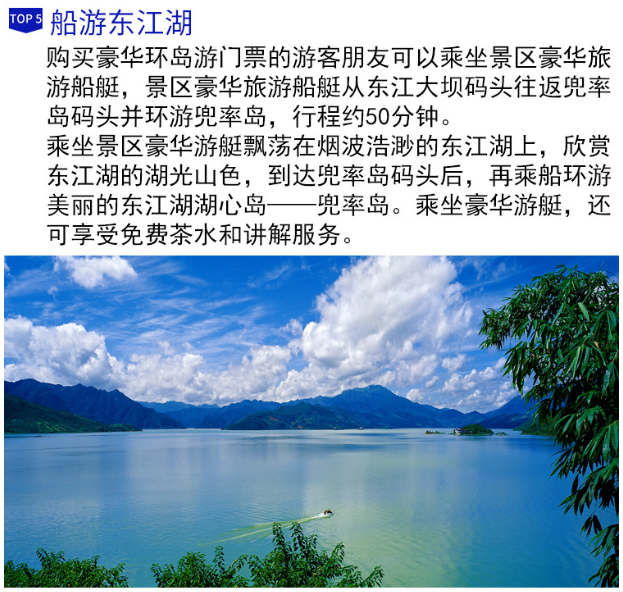 換票地點:東江湖景區大門口(門樓)游客中心網絡取票處